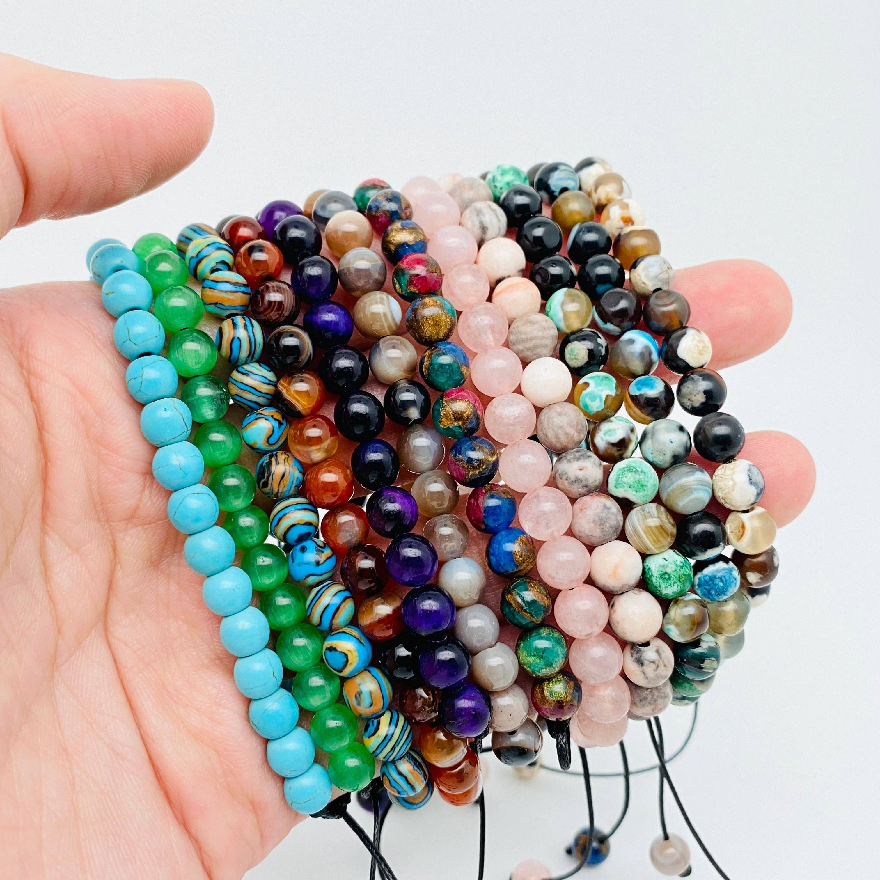 6mm Natural Stone Hand Woven Stretch Bracelets: Red Tiger / 6mm (stretchable)