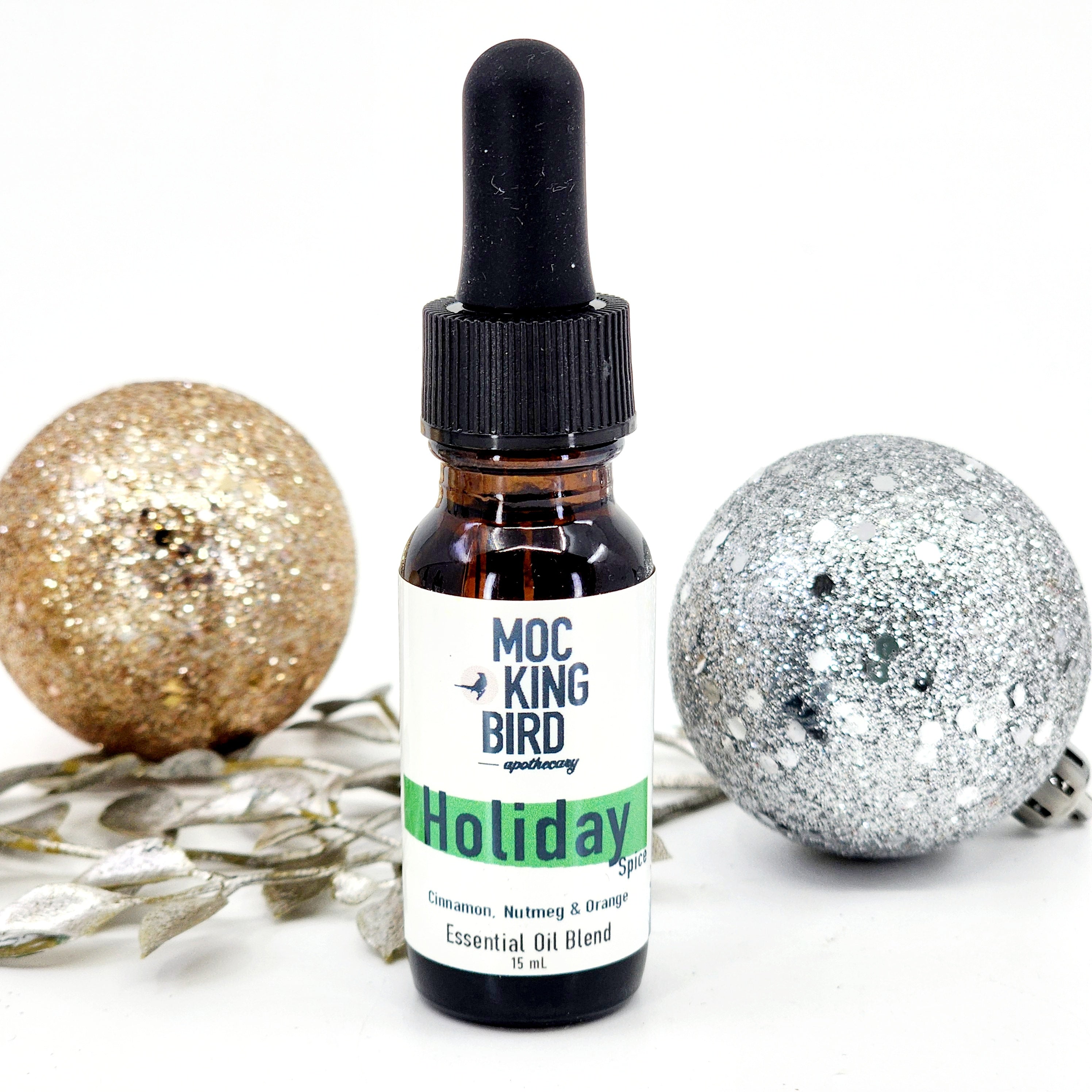 La mezcla de aceites esenciales Holiday Spice es una mezcla dulce, picante, fuerte y asequible de canela, nuez moscada, clavo, pimienta de Jamaica, laurel, vainilla y naranja.